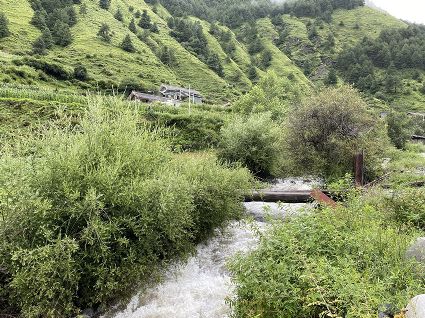 走到一處草坪,南杰和吉美下馬一起去扶雍貝,說是在此處稍作歇息。雍貝的臉色恢復(fù)了紅潤(rùn),他取下盤香枝插進(jìn)吉美濃密的頭發(fā)里,兩人由此發(fā)出了嬉笑聲。馬兒徑自走向草坪深處的水洼里飲水,打著酣暢的響鼻,頸項(xiàng)上銅鈴鐺隨馬兒鬃毛的抖動(dòng)發(fā)出了“鐺鐺”的聲音。馬兒飲飽了水,轉(zhuǎn)身朝我們走來。繼續(xù)騎行,不知過了多久,日光在頭頂上游移,漸漸偏西。雍貝在前方問南杰,阿尺,巴烏牧場(chǎng)還有多遠(yuǎn)?南杰指向眼前的山峰說,登上這座峰頂就到了?;赝宦方?jīng)過的河谷,早已不知去向,我們身處的位置幾乎與周遭巍峨的山巒平齊了。我從衣兜里取出手機(jī)測(cè)試海拔高度,4820米。