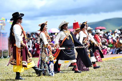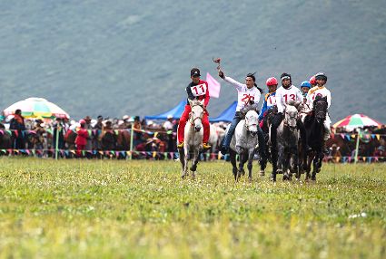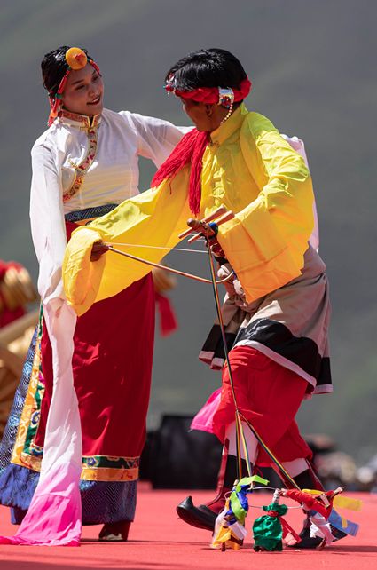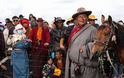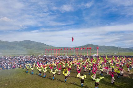 8月6日至8日,2020四川甘孜山地文化旅游節(jié)系列活動之一的色達金馬文化節(jié)在色達縣扎青塘草原舉辦。當?shù)厝罕娚碇?jié)日盛裝載歌載舞、歡聚一堂,文藝表演、賽馬、傳統(tǒng)藏族民俗體育比賽、傳統(tǒng)服飾表演、民間藝術(shù)和非遺展演等活動精彩紛呈。