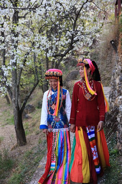高大挺拔的梨樹如星星般散落在獨具特色的嘉絨藏族民居和古老碉樓附近。眼前看到的是雪白的梨花,身邊走過的是笑容比梨花還甜的藏族姑娘,交融成一道絕美的風(fēng)景線。
