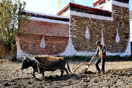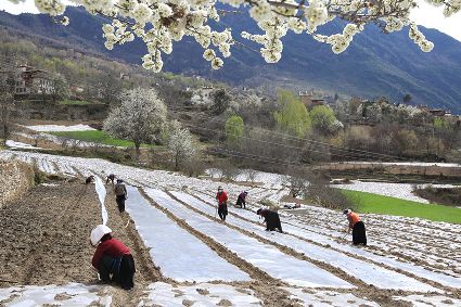 “春耕、夏耘、秋收、冬藏”是大地的“四季歌”。幾場春雨過后,大渡河流域氣溫逐漸回升。時下,穿行于我州 大渡河流域廣袤的山川田野間,到處是一派搶農時的忙碌場景。沉寂的田野,開始熱鬧起來。農戶們?yōu)榱艘荒甑暮檬粘桑成媳澈t、帶著鋤頭、趕著耕牛,走進阡陌縱橫的田野,鉚足“?!眲艃?,翻土、修剪、澆水、除草,田野間好不熱鬧。一幅忙春耕、勤備耕的“春耕圖”已在甘孜大地徐徐展開。