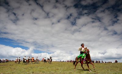 賽馬是藏族人民喜愛的傳統(tǒng)體育項(xiàng)目之一,每到夏天,甘孜大地繁花似錦,各地都會(huì)組織耍壩子活動(dòng),賽馬便成了耍壩子活動(dòng)的“主角”。近年來,在黨的民族政策光輝照耀下,甘孜大地發(fā)生了翻天覆地的變化,各族群眾的生活芝麻開花節(jié)節(jié)高。時(shí)值夏天,又到了高原一年中最美的季節(jié),當(dāng)?shù)厝罕娨再愸R的方式,展示脫貧后的喜悅,展望美好的生活前景。這組照片是在康定市新都橋鎮(zhèn)捕捉到的。
