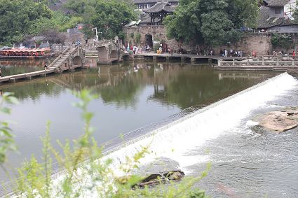 大榮橋。這座建在瀨溪河上、歷經(jīng)數(shù)百年的古石橋,一頭連著大足的地盤,一頭連著榮昌的地盤,故名。看大榮橋的最佳觀景點(diǎn)設(shè)在大榮寨對面的萬靈山腰,從那里看大榮橋和橋拱那端毗鄰的大榮寨,一種看白描連環(huán)畫中古鎮(zhèn)的感覺,就冉冉升起了。