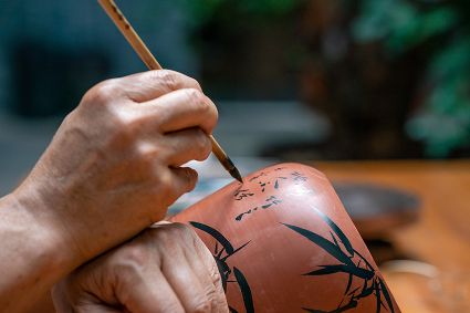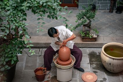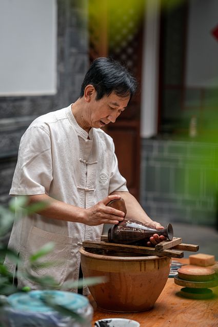 生活在云南省紅河哈尼族彝族自治州建水縣碗窯村的徐榮洪是當(dāng)?shù)匦旒腋G的第五代制陶藝人,也是非遺建水紫陶燒制技藝的傳承人。 泥料制備、拉坯造型、濕坯裝飾、雕刻填泥、高溫?zé)?、無釉磨光……要想做出精良的紫陶工藝品,每個(gè)流程都需要潛心鉆研。“制作技藝環(huán)環(huán)相扣,某一道工序出現(xiàn)紕漏,燒出來就是瑕疵品?!?徐榮洪拿起刻刀,對陶坯表面開始進(jìn)行雕刻。 今年57歲的徐榮洪小時(shí)候就跟著長輩上山挖陶泥,多年來堅(jiān)持鉆研建水紫陶的制作技藝。 徐榮洪介紹說,作為紫陶藝人,以陶為紙,根據(jù)器型將不同的文化與藝術(shù)形式注入其中,使其具有無限活力。非遺文化閃爍著人類智慧的光芒,也承載著人們心底的情思鄉(xiāng)愁。