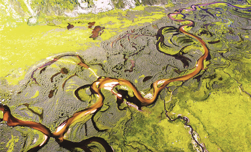 拉龍措古冰漂濕地旅游景區(qū)里有近百種植被,以及黑頸鶴、黑鸛、金雕、胡兀鷲等鳥(niǎo)類動(dòng)物。陽(yáng)光下的拉龍措,波光粼粼,斑頭雁在湖面“飛舞”,潔白的羽毛伸展后露出圍繞的黑邊,宛若芭蕾舞者在湖面起舞……