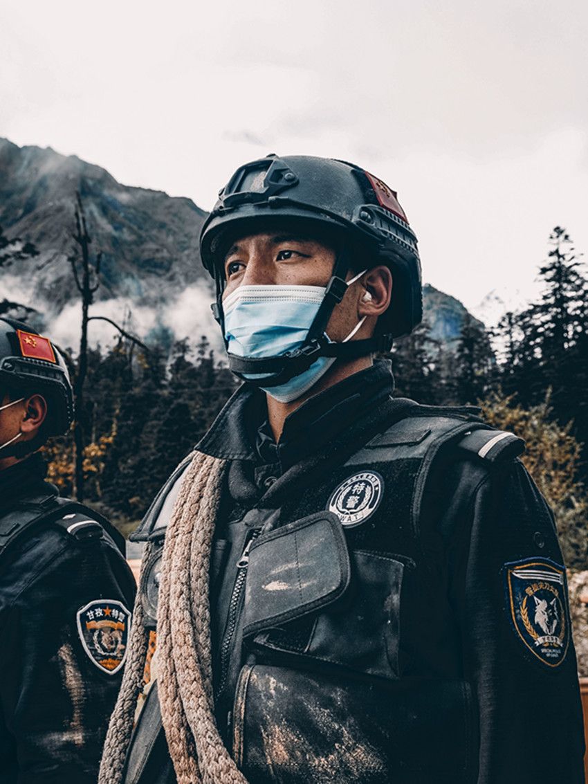“通過參觀,勾起了我們?cè)凇?·5”瀘定地震救援中點(diǎn)點(diǎn)滴滴的畫面,仿佛就在昨天一樣,甘孜特警不辱使命,打贏了這場硬仗。如今,地震已過去一個(gè)多月了,我很牽掛災(zāi)區(qū)的鄉(xiāng)親們,不知他們現(xiàn)在過得怎么樣?看見畫展中自己的影像,腦海里立刻浮現(xiàn)出在生死路線上奔跑的一幕幕,這段記憶讓我終身難忘。在畫展中看到還有很多戰(zhàn)友、前輩,他們?yōu)槊穸鴳?zhàn)的精神值得我們?nèi)W(xué)習(xí)。我想說,甘孜特警時(shí)刻準(zhǔn)備著。”
