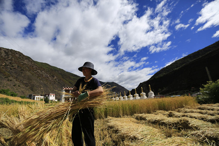 風吹麥田千層浪,麥穗飄香農(nóng)家忙。夏至已到,我州巴塘、鄉(xiāng)城、丹巴等地的小麥陸續(xù)進入成熟期。小麥陸續(xù)開鐮收割,廣大農(nóng)民群眾搶抓天氣晴好的有利時機,加緊搶收小麥,確保夏糧豐收、顆粒歸倉。