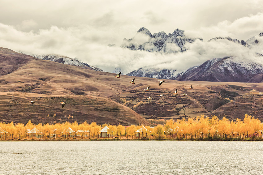 雪山+彩林+候鳥同框 高原濕地“譜寫”秋季“情書”