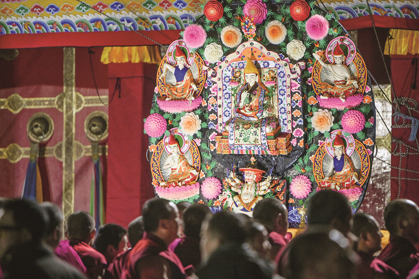 農(nóng)歷正月十五,在甘肅省甘南藏族自治州夏河縣,被譽(yù)為“世界藏學(xué)府”的拉卜楞寺舉行一年一度的酥油花燈展,僧人們制作的精美酥油花作品吸引了眾多僧俗群眾和海內(nèi)外游客前來觀看。