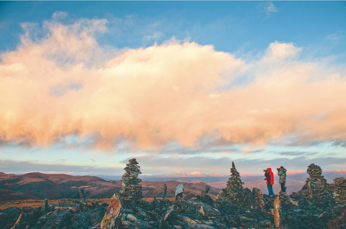 在這條路上行走,雖會遇到種種因天氣或地質(zhì)路況造成的危險(xiǎn),但卻阻擋不住人們前行的腳步。作為從事攝影多年的風(fēng)光攝影師,我也曾長期奔波在川藏線上。每當(dāng)光影勝景乍現(xiàn),我心中都會激情涌動,充滿了對這一方土地和人們深深的愛。而能夠把這些美景攝入鏡頭,并與朋友們分享,于我而言就更感榮幸。川藏線是一條鮮花盛開之路。在康定市境內(nèi)聳立的海拔7556米的大雪山是蜀山之王,橫斷山脈最高峰——貢嘎山。它如同一朵無比巨大的雪蓮花,綻放在天地之間。在它的東坡海螺溝至康定城路途中,有一個(gè)名叫雅家埂的山口。每當(dāng)春夏交替,山口會盛開漫山遍野的各色杜鵑花,在藍(lán)天白云的映照之下,一眼望去,簡直就是斑斕無比花的海洋。貢嘎山區(qū)域也是聞名世界的植物模式標(biāo)本采集地,百年前,世界著名的植物學(xué)家威爾遜所采集命名的許多植物均出自這里,其專著《中國——園林之母》1929年出版,轟動世界。