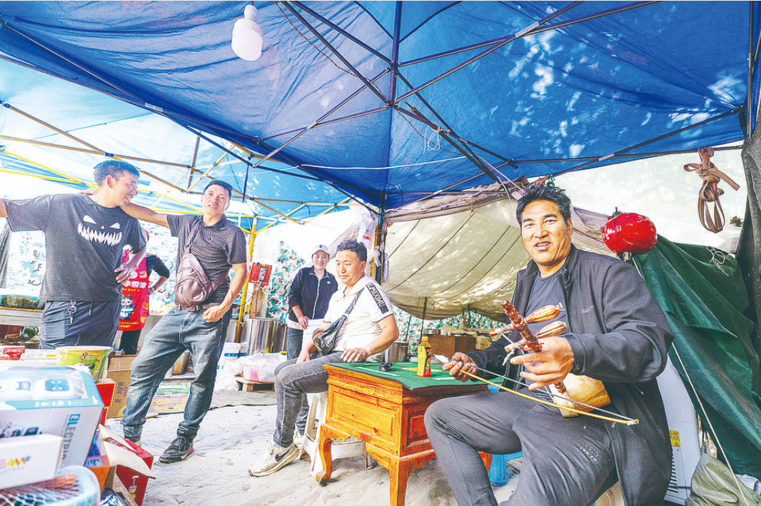 和益西有相同想法的群眾不在少數(shù),每年藏歷八月初,巴塘群眾都會齊聚在夏邛鎮(zhèn)龍王塘,用各式各樣的帳篷裝飾草地,傳統(tǒng)非遺藏戲和歡快弦子點燃了節(jié)日氛圍,燒烤攤、小賣鋪、藏餐館俘獲四方游人味蕾,“央勒節(jié)”讓幸福在此刻具象化。