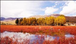 蔚藍(lán)蔚藍(lán)的天空飄著幾朵淡淡的白云,天空是那么近,仿佛你伸手可觸。一出縣城,你可以看到世界上海拔最高、面積最大的人造青楊林,這兒的海拔是三千七百多米,農(nóng)業(yè)學(xué)家認(rèn)為海拔4000米是不能生長(zhǎng)農(nóng)作物的,可是這里照樣是郁郁蔥蔥,到處是風(fēng)里閃爍的青楊樹,映著灘寬水淺的小河,炊煙裊裊的藏房,潔白豐滿的佛塔,還有色拉村的晨霧,好一派迷人的美景……