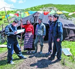 新龍縣拉日馬牧區(qū)派出所,地處海拔3768米的山塬草地,全所干警7人,負(fù)責(zé)管理方圓1527.19平方公里內(nèi)7個(gè)行政牧村、53個(gè)牧業(yè)小組、1269戶共計(jì)5600多人的治安秩序。這里遠(yuǎn)離縣城,卻和周邊理塘、雅江、道孚三縣牧區(qū)相接,社會(huì)狀況復(fù)雜、自然環(huán)境惡劣,轄區(qū)內(nèi)大多數(shù)牧場(chǎng)靠騎馬、步行跋涉才能到達(dá)。多年來(lái),全所干警以艱苦為榮,與牧民一家親,并用實(shí)實(shí)在在的工作業(yè)績(jī),徹底改變了過(guò)去突出存在的打架斗毆、交通混亂和治安案件時(shí)發(fā)等問(wèn)題。牧區(qū)的和諧穩(wěn)定,牧民的安居樂(lè)業(yè),贏得了牧民群眾的交口稱贊。(紫夫/文 扎西澤仁/圖)