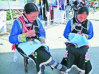 瀘定縣嵐安刺繡是純手工特色工藝品。1300多年前,羌族工藝就流傳于嵐安鄉(xiāng),刺繡工藝便是其中一種。嵐安刺繡在操作上有平繡、牽繡 、挑花和納花;工藝分圖譜和剪紙,圖譜是繡大型的如圍裙、小兒抱裙、背心等,先勾畫圖譜,按圖配色選線再繡;剪紙是用蠶繭殼剪成圖形,再固定在所繡之物上,配色選線繡,所繡之物多為涉獵帽子、鞋子、婦女的針插子、扇插子等。主要繡字、花、草、樹、鳥、獸、昆蟲、山水等。全鄉(xiāng)有800余農(nóng)戶,每戶都有一兩人會從事手工刺繡。刺繡產(chǎn)品可作贈送品、商品、旅游紀念品及各種裝飾品。(徐慧 文/圖)