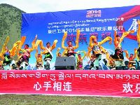 上午十點(diǎn)半,隨著一陣歡快的音樂(lè)聲,康巴衛(wèi)視2014年“走基層”歡樂(lè)藏區(qū)行活動(dòng)在甲根壩鄉(xiāng)木雅村正式拉開(kāi)序幕。