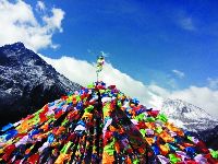 旅程的第七天,翻越雀兒山埡口,海拔5050米。因?yàn)樯礁呗冯U(xiǎn),所以已經(jīng)在開鑿隧道,三年后這里的路將會荒廢,人們也不再從這里經(jīng)過。第一次翻越五千米的高度,心中難免激動(dòng),我跑下車,摸了摸被經(jīng)幡圍繞的紀(jì)念碑。我想人生總有很多第一次,以后還會第一次翻越六千、七千米。