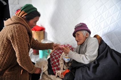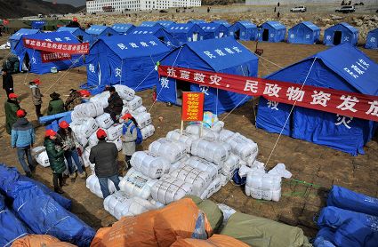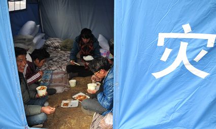 發(fā)放救災物資及災民生活掠影