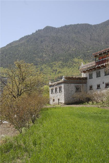 丹巴縣梭坡鄉(xiāng)為大渡河第一鄉(xiāng),大渡河由此匯集了丹巴縣境內(nèi)的大金河、小金河、東谷河、革什扎河,旖旎而去。四月,大渡河帶來充沛的雨量,在梭坡鄉(xiāng)兩岸高山之巔,綠色正在點(diǎn)染土地、房屋、人們的笑容以及湛藍(lán)的天空。