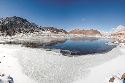 對(duì)常年生活在這片土地上的人們來說,一夜便能厚積沒履的大雪早已見慣不驚,但走出縣城一瞥石渠秋日的雪景,依舊讓人不由驚嘆大自然的鬼斧神工。不似平原、丘陵之妖嬈,石渠的雪景是宏偉壯麗的、是氣勢(shì)磅礴的,置身其中頓感渺小,心中唯余對(duì)自然之敬畏。在25191平方公里的土地上,無論草原或是山巒,入眼皆是一片耀眼的銀白,在頭頂萬里無云的湛藍(lán)天空的輝映下,整個(gè)石渠只剩干凈的藍(lán)和純潔的白。