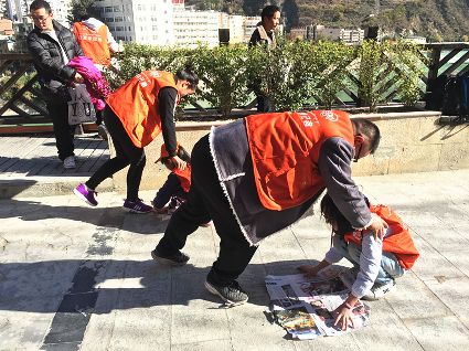 在瀘定橋上,小記者們向游客講述當(dāng)年“紅軍飛奪瀘定橋”的英雄壯舉。在瀘定橋河西長(zhǎng)廊,帶隊(duì)老師組織小記者和家長(zhǎng)們進(jìn)行了“向目標(biāo)前進(jìn)”的親子互動(dòng)游戲,游戲?qū)议L(zhǎng)和孩子的默契程度進(jìn)行了考驗(yàn),鍛煉了他們的智力和體力。在瀘定紅軍紀(jì)念館廣場(chǎng)上,小記者們按照帶隊(duì)老師的要求進(jìn)行拼接游戲,完成“小小紅軍支援前線”,獲勝的小組獲得了獎(jiǎng)品。游戲結(jié)束后,小記者們?cè)谥v解人員的帶領(lǐng)下參觀了瀘定紅軍紀(jì)念館,了解了許多相關(guān)的歷史知識(shí)。同時(shí),小記者們以組為單位開展了“講紅色故事”活動(dòng),講解內(nèi)容涉及瀘定橋的修建、瀘定橋勇士英勇犧牲的故事等,讓小記者進(jìn)一步了解到了瀘定縣的紅色歷史文化。