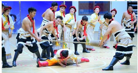 區(qū)別于傳統(tǒng)的民族舞蹈表演,在運動會中的表演項目,需含有競技成分,以把具有民族特色的運動保留下來為己任??靵砀S記者的鏡頭,回到9月3日康定民族體育館的賽場上,看看運動健兒們的表現(xiàn)吧。特別提醒,9月4日晚8時,最后一場表演項目比賽將在康定民族體育館上演,敬請速來圍觀。
