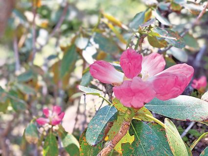 在這里,滿樹(shù)粉紅的花朵,在嫩葉的襯托下美得不勝收,每一個(gè)斜倚在枝頭的花骨朵,都可獨(dú)立入畫(huà),每一棵怒放的花叢,一團(tuán)團(tuán)一簇簇一山山,朵朵花兒,迎風(fēng)玉立,花瓣兒密密匝匝,蕊靠著蕊,瓣貼著瓣,相互依偎競(jìng)相輝映,粉的、紅的……各色不同的杜鵑花兒點(diǎn)綴山間,在青山相映、綠樹(shù)相伴下,不負(fù)春風(fēng),不負(fù)天地,不負(fù)日月,不負(fù)流年……你來(lái),她們臨風(fēng)綻放歡迎你,嗅著大自然的氣息,穿梭在花海叢林間,春天的色彩不斷刷新著目光,一路花語(yǔ)喃喃,一路欲語(yǔ)還休,正可謂“何須名苑看春風(fēng),一路山花不負(fù)儂”。還沒(méi)看過(guò)今年杜鵑花的小伙伴,快來(lái)打卡喲,邂逅一株花開(kāi)的樹(shù),真心別錯(cuò)過(guò)這場(chǎng)“花海盛宴”!賴卓 徐宏燕 文/圖