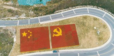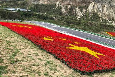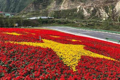 四川瀘定縣鮮花繪黨旗