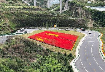 7月1日是中國共產(chǎn)黨98周歲的生日。四川甘孜藏族自治州瀘定縣用23萬多株鮮花,在雅康高速路瀘定連接線出口處擺了鮮紅的黨旗、國旗造型,以此表達(dá)對黨的感情。