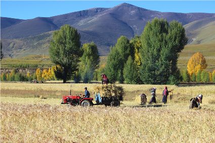 “我們要利用這段晴好的季節(jié),抓緊收割?!痹趶V袤的原野,村民們開鐮收割青稞,一輛輛滿載成捆青稞的拖拉機(jī)在田間和鄉(xiāng)村小道上歡快地疾馳。