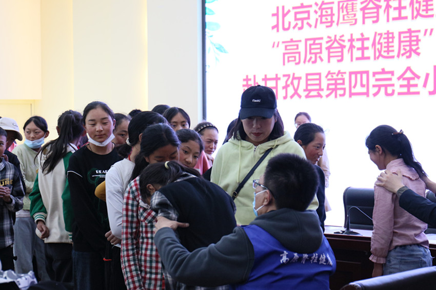 日前,北京海鷹脊柱健康公益基金會“高原脊柱健康”醫(yī)療專家團隊到甘孜縣小學(xué),為孩子們逐個進行脊柱篩查和診斷,其中有31名輕微脊柱側(cè)彎的學(xué)生、5名重度脊椎側(cè)彎患者納入赴京手術(shù)名單。圖為醫(yī)護人員正在篩查。 甘宣 攝影報道