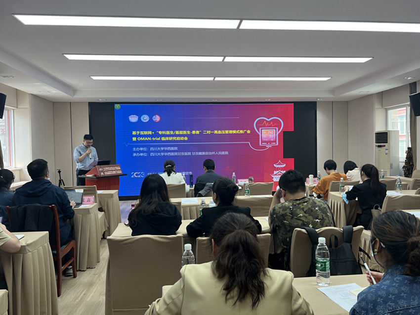 本網(wǎng)訊 7月1日,由四川大學(xué)華西醫(yī)院主辦、四川大學(xué)華西醫(yī)院甘孜醫(yī)院承辦的基于互聯(lián)網(wǎng)+“專科醫(yī)生/基層醫(yī)生——患者”二對一高血壓管理模式推廣會暨OMAN-trial臨床研究啟動會在康定舉行,來自四川大學(xué)華西醫(yī)院的專家們以學(xué)術(shù)講座與探討的形式,圍繞高血壓管理新模式和OMAN-trial臨床研究等相關(guān)內(nèi)容進(jìn)行詳細(xì)深入的探討,為廣大醫(yī)師帶來了一場豐富精彩的學(xué)術(shù)盛宴。