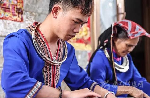 24歲的黃楊偉是海南一名大學(xué)生,也是一名創(chuàng)業(yè)者。他在五指山市區(qū)開了一家非遺黎錦服飾店,除了賣黎族服飾,還會不定期線上直播講解黎錦制品和黎族文化。圖為黃楊偉(左)和外婆一起織黎錦。