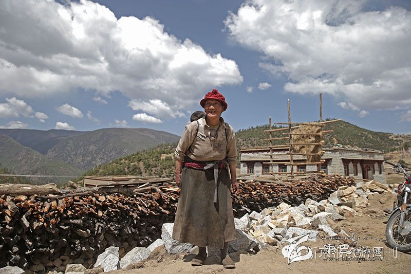 在海拔3640多米的阿西村,一位藏族老人在路口友好的和我們打招呼。(攝影 陳杰)