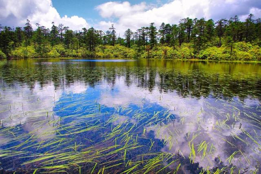 繼續(xù)前行,下一站既是木格措。木格措漢名:野人海,水源來自于身后女媧雪山的積雪融水,水質(zhì)清冽,能見度極高,湖四周群山環(huán)抱,紅海、黑海、白海等幾十個小海子圍繞在周圍,如眾星拱月般。木格措風(fēng)光秀美,“臥虎觀月”、“雙霧墜海”等景觀最為獨特。