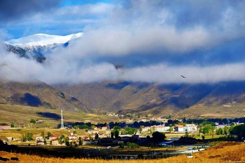 “跑馬溜溜的山上,一朵溜溜的云喲。?!币磺刀ㄇ楦枋沟门荞R山揚名世界??刀h城周圍有三座山環(huán)繞,其中之一就是跑馬山。跑馬山,藏名:拉姆則,意為:仙女山。因山頂有湖泊五色海,故又名:五色海子山。