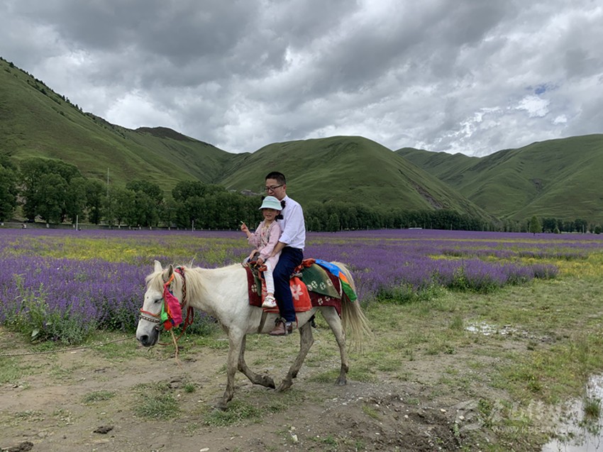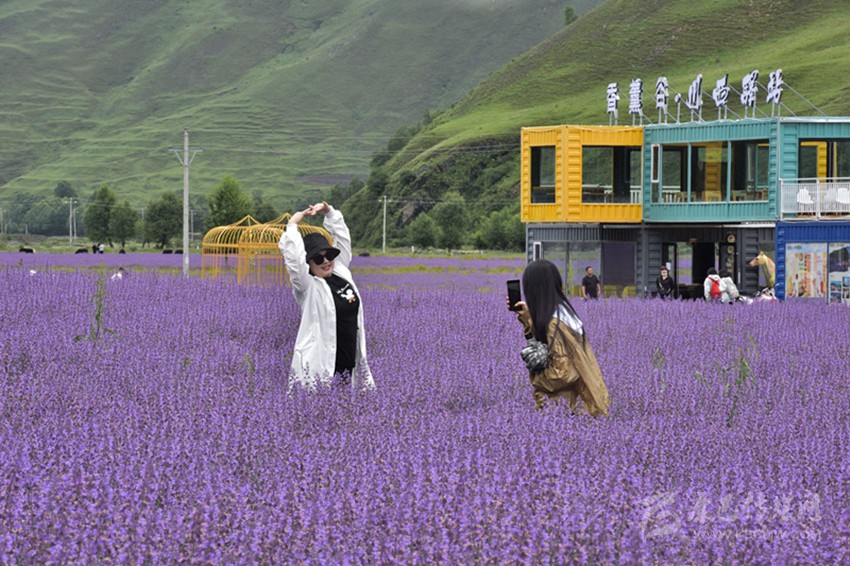 是時,微風(fēng)乍起,黛山環(huán)抱下的花海漾蕩著瀲滟的紫光,裹挾著無邊的浪漫和淡淡的芳香,向棧道上的游人涌來,彌漫到腳邊、四溢到身旁——踏訪這個藏在川西高原的“普羅旺斯”詩境實(shí)地,一幅美不勝收的“夏日高原送爽圖”令人心迷神醉。