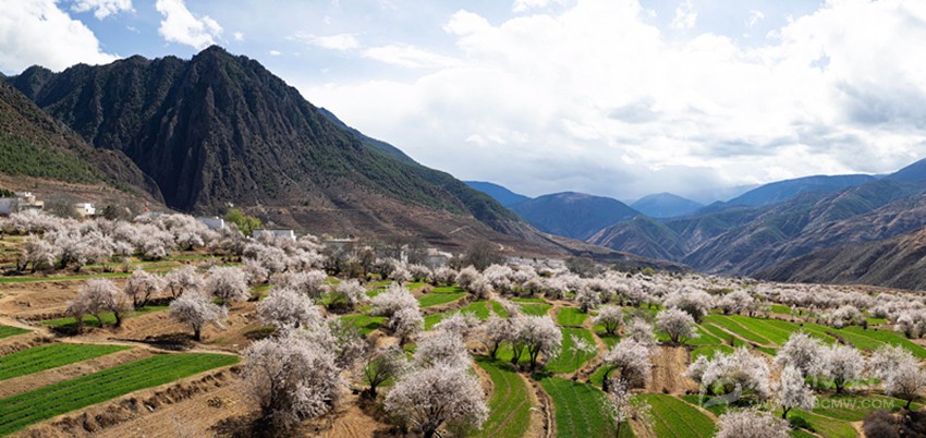 近日,四川省得榮縣境內(nèi)成片的野生桃花從河谷到山腰次第開放,漫山遍野的桃花與雪山、麥地、白藏房等構(gòu)成高原上美麗的“世外桃園”畫卷。 近年來,當(dāng)?shù)卣耙曰槊健?,加強在桃花較集中的村寨打造觀景平臺,引導(dǎo)當(dāng)?shù)厝罕姲l(fā)展食宿,不斷完善旅游服務(wù)設(shè)施,增加村民收入,鞏固脫貧攻堅成果。