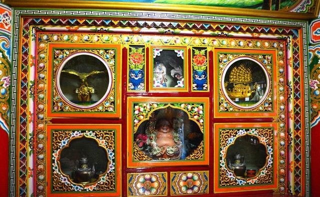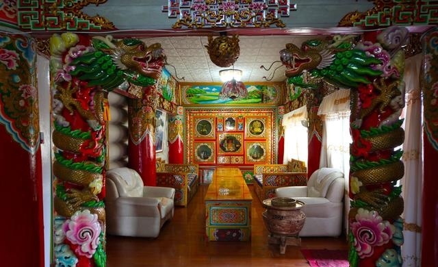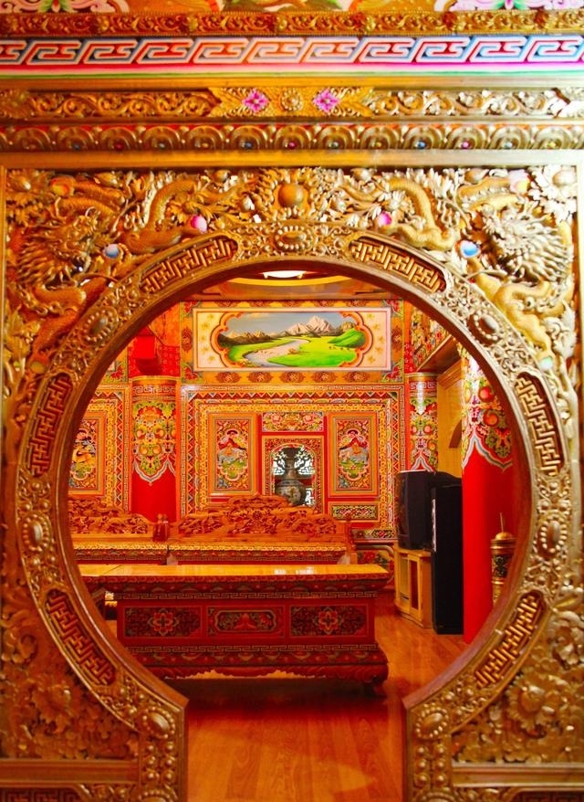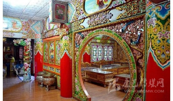 道孚民居室內(nèi)精雕細(xì)鏤,描金繪彩,每一個圖案或圖畫就是一個吉祥物或一個傳說。民居客廳陳設(shè)豪華,富麗堂皇,極顯主人的富有;經(jīng)堂供奉佛像,酥油燈長明,是家中的清靜之地;臥室多用箱式或椅式藏床,陳設(shè)溫馨而別具風(fēng)情。