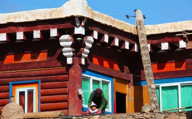 民居的基礎(chǔ)多為長方形,二樓呈L型、凹型或回型。建筑的內(nèi)層結(jié)構(gòu)均以木材料為唯一的建筑材料。整座房屋用“棒柯”、“棒勒”裝修成主人或客人的臥室、儲藏室、經(jīng)堂、客廳(有的分設(shè)漢式和藏式兩廳)、廚房、走廊、陽臺、廁所。陽臺外圍墻上均建小型熏煙臺,屋頂有頂幡塔。頂蓋用樺樹皮或硬雜木條墊底,再鋪“阿嘎土”而成,日曬雨淋絕不漏水,經(jīng)久耐用。屋架門窗外表裸露部分,多以油漆或自制有色土染色,做到防腐防蛀美觀大方。一般而言,道孚民居的大框架,費(fèi)不了多少工時。當(dāng)建房的材料備齊后,主人就請喇嘛打卦,擇一良辰吉日動工。