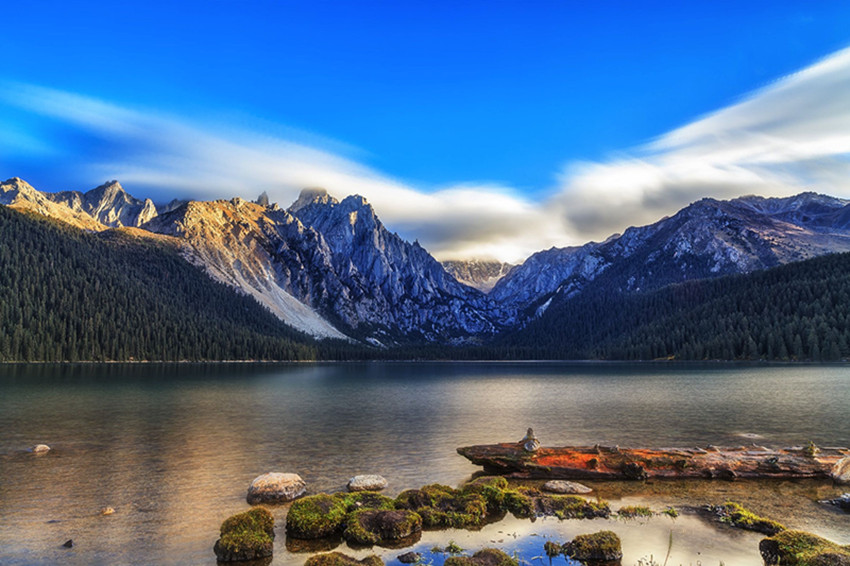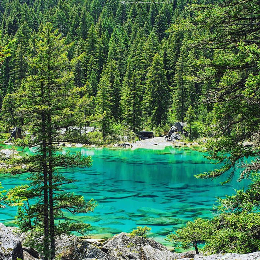 措普溝景區(qū)由華山、雪山、湖泊、森林、河流、峽谷、瀑布、溫泉、草原、野生動物和寺院等人文景觀組成。巴塘境內有一百多個奇姿異色的湖泊撒落在大地上,這些湖泊中有川西高原最大的措拉湖,也有深邃莫測的亞莫措根湖,而最秀美的要數松耳石般碧翠的措普湖。它四面環(huán)山,緊靠峭壁嶙峋、山體裸露、山型奇特無比的扎金甲博神山,它的正面是5833米的尼特崗日峰,周圍被茂密的原始森林和翠綠草坡環(huán)抱;湖區(qū)景色秀麗嫵媚,波光粼粼的湖面,清碧亮麗的湖水,平靜無語地置于燦爛陽光下。湖邊的森林里有很多珍禽異獸棲息,湖里成群的魚兒自由穿梭,但人們從不捕殺這些動物,千百年來一直保持著原始生態(tài),環(huán)境十分幽靜,猶如世外桃源。站在插有許多嘛呢經幡的湖邊,向湖里發(fā)出“嗚、嗚……”的叫聲,隨著這有節(jié)奏的聲波,鱗光閃閃的魚群會蜂擁而至爭搶投下的食物,當你把手放入水中,便會有許多魚來“親吻”你的手指,讓你充分感受到人與自然的高度和諧。