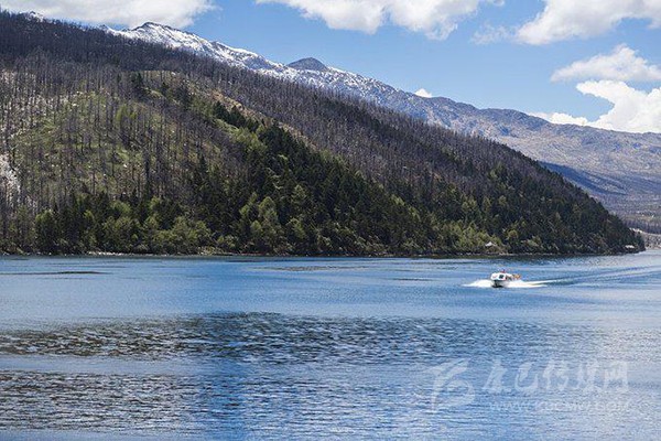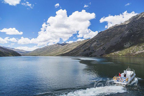 坐船游湖是感受木格措風(fēng)光最好的方式。坐在船艙看在那煙波浩渺波光粼粼的湖面,使人感到一種置身世外桃源般的感受,陶醉在這沒(méi)有粉飾的質(zhì)樸圣潔的美中,忍不住想放聲高歌,又怕破壞了這和諧的氣氛。
