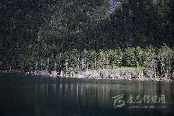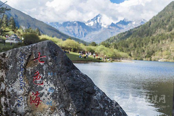 月牙形的七色海猶如一面五光十色的鏡片,鑲嵌在森林與草坪之間。叢林中百鳥(niǎo)輕歌曼舞,湖岸坪清幽秀雅,湖中水草飄逸,羌活魚在水底卵石中悠游,蕩舟穿霧興波,湖光山色眼底。
