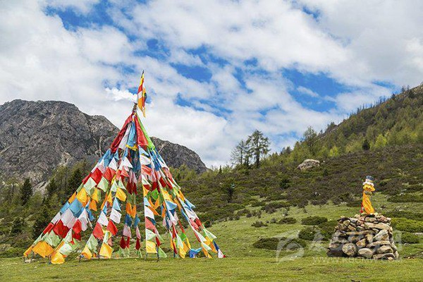 藏人在游覽杜鵑峽的時(shí)候會(huì)在河邊壘起瑪尼堆,族對(duì)佛教文化有著特殊的感情,男女老幼都以做佛事為崇高。在廣袤的草原上、偏僻的山溝里,人們刀筆不停,艱苦勞作,在一塊塊普通的石頭上刻寫上經(jīng)文以及各種佛像和吉祥圖案,并飾以色彩,使平凡的石頭變成了瑪尼石。虔誠(chéng)的藏族信徒相信,只要持之以恒地把日夜默念的六字真言紋刻在石頭上,這些石頭就會(huì)有一種超自然的靈性,給他們帶來(lái)吉祥如意。隨著人們不倦的紋刻,各種各樣大小不一的瑪尼石聚集起來(lái),就成了瑪尼堆和瑪尼墻。