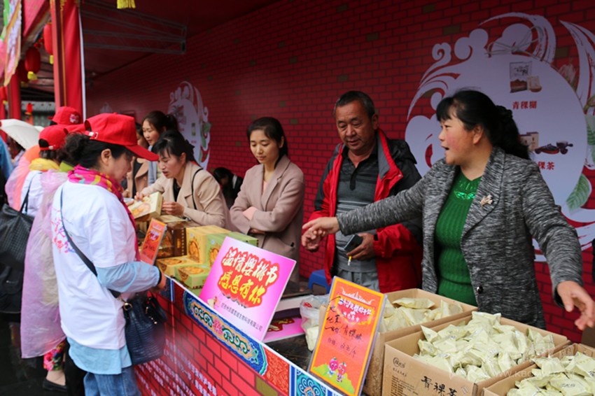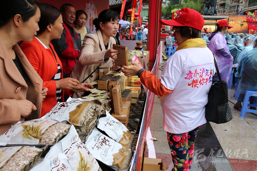 據(jù)王建輝介紹,為了展示本地特色農副產品,此次櫻桃節(jié)專程邀請了5家瀘定本土企業(yè)進行現(xiàn)場擺展,而貢嘎雪域生物科技有限公司就是其中之一,擺展還不到兩個小時,公司所生產的青稞餅就被外來的游客一搶而空。能夠被眾多游客光顧,王建輝表示,這一切都是櫻桃節(jié)帶來的“福利”?!澳壳坝械拇笮推髽I(yè)通過櫻桃節(jié)了解到了我們的產品,看到了我們發(fā)展的前景和企業(yè)的特色,準備和我們合作?!蓖踅ㄝx激動的說。