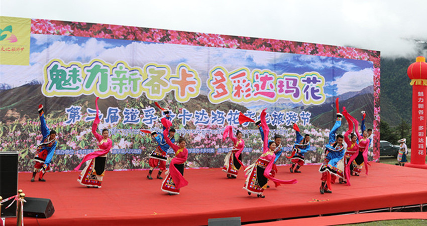 2017年凍坡甲村舉辦了第一屆達瑪花旅游節(jié),讓很多的很看到了這個道孚藏寨的魅力與韻味,滿山達瑪花開的盛景尚在記憶中。27日,該村舉辦了主題為“魅力新各卡 多彩達瑪花”的第二屆達瑪花文化旅游節(jié),引得周邊游客慕名來參加。