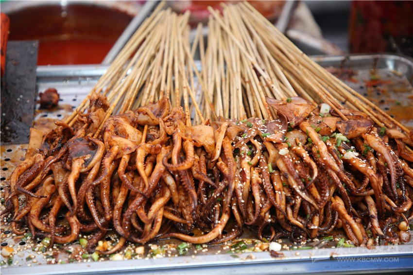 作為一個(gè)四川人,對(duì)于麻辣味的食物毫無抵抗力,在康定后街林立的商鋪中,記者一眼就相中了“深海魷魚花”這家店??粗褐t油的魷魚花靜靜地躺在紅椒和芹菜間,記者咽了咽口水,向老板買了一份兒?!罢媸羌兗兊拇ㄎ秲簺]錯(cuò)了,又麻又辣的?!庇浾邔?duì)老板說。老板回答到:“魷魚花最講究的就是刀法了,要切得好看。雖然在顧客看來都差不多樣子,但是我每次都要經(jīng)過細(xì)細(xì)斟酌再一刀一刀的切,爭取多弄幾種樣式,現(xiàn)在我的??蛡円矔?huì)細(xì)細(xì)地考究我切的魷魚花了。以前我只賣烤魷魚,只是在家里偶爾會(huì)給我兒子做魷魚花,后來看我兒子喜歡吃,才開始慢慢地賣魷魚花,沒想到還是很受歡迎。這次美食節(jié),我發(fā)現(xiàn)沒有人做魷魚花,所以我就帶著我兒子喜歡的魷魚花來參加這次美食節(jié)了?!崩习逍χ浾哒f。