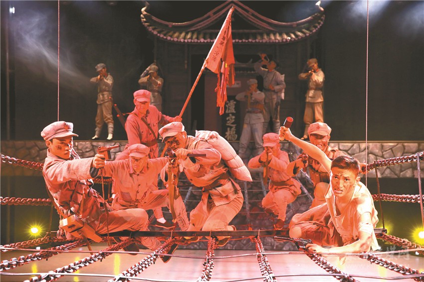 本網(wǎng)訊 在身著紅軍服、打著“火把”的戰(zhàn)士的引領(lǐng)下,觀(guān)眾緩緩而行,在經(jīng)歷一場(chǎng)激烈的戰(zhàn)斗后,大家走過(guò)銷(xiāo)煙彌漫的戰(zhàn)場(chǎng),來(lái)到實(shí)景劇場(chǎng),以一位“親歷者”的身份“穿越”至歷史的場(chǎng)景。幽深的河谷、洶涌的波濤、兇殘的敵人、英勇的戰(zhàn)士、激烈的戰(zhàn)斗……隨著劇情的展開(kāi),讓人親臨其境84年前那場(chǎng)驚天動(dòng)地的重要戰(zhàn)役——《飛奪瀘定橋》。