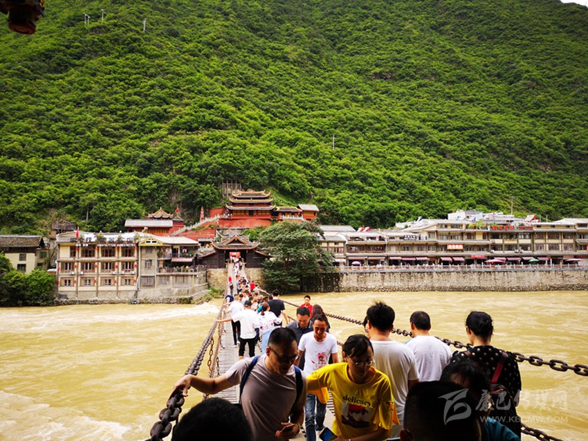 游客體驗瀘定鐵索橋。本網(wǎng)資料庫 圖
