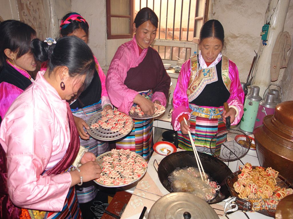 巴塘人過春節(jié)很講究,除保持了漢民族春節(jié)特有的習(xí)俗外,獨(dú)特的地方飲食文化在藏區(qū)獨(dú)樹一幟,別具風(fēng)味。由于巴塘是一個(gè)以盛產(chǎn)小麥為主的農(nóng)業(yè)縣,所以面食為巴塘主食。勤勞的巴塘人用面食創(chuàng)造出了美味可口、品種繁多的地方小吃。