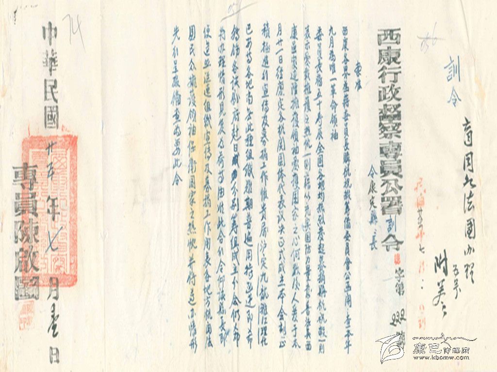 這是一份在1936年7月,由西康行政督察專員為動員西康各界民眾捐款購買飛機(jī)發(fā)出的訓(xùn)令;康定城中及西康省康屬地區(qū)各縣民眾捐款購飛機(jī)的活動一直持續(xù)到1940年,據(jù)1940年4月的《西康新聞》,在15日、16日兩天連續(xù)刊登“西康省中國兒童號飛機(jī)捐籌募款數(shù)目表”,公布了西康省民眾捐款購飛機(jī)的結(jié)果。
