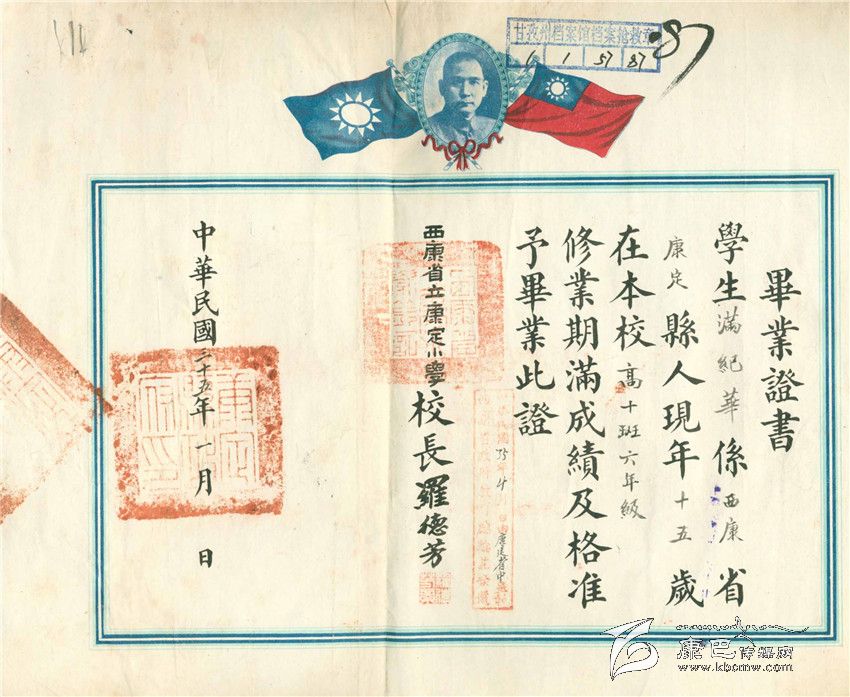 這里的幾份畢業(yè)證書,有由“國(guó)立康定師范學(xué)校”所頒發(fā) 畢業(yè)證,也有由小學(xué)校頒發(fā)的小學(xué)畢業(yè)證。通過這些畢業(yè)證,讓今天的人們也能感受到在那個(gè)時(shí)期,西康地方的學(xué)校教育十分正規(guī),也就是那個(gè)時(shí)期畢業(yè)的許多學(xué)生,成為了新中國(guó)成立后,建設(shè)社會(huì)主義新藏區(qū)的一支重要力量。